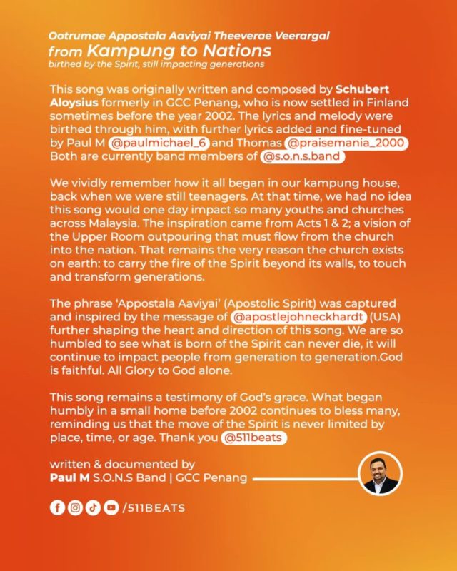 By restoring old recordings, creating lyric videos, and inviting original artistes to share behind-the-scenes stories, 511 Beats reintroduces these songs to younger generations. The goal is to keep them alive in worship spaces and not in forgotten archives.