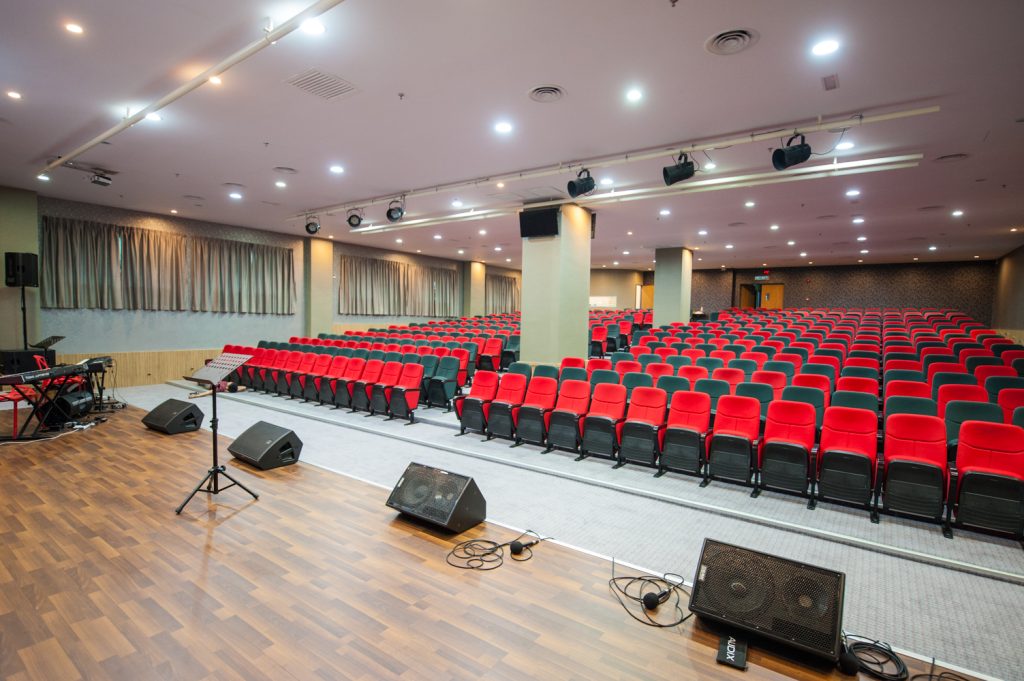 Level 2: Auditorium – The auditorium serves as the BM worship hall and the front foldable backdrop can be opened so the auditorium becomes the upper floor for Dewan Calvary, which is a multipurpose hall annexed to Calvary Crown for concerts, worship and sporting purposes.