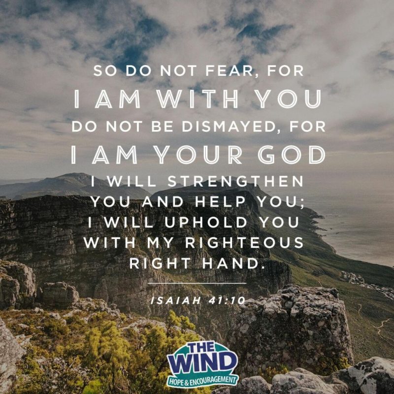 So do not fear, for I am with you; do not be dismayed, for I am your God. I will strengthen you and help you; I will uphold you with my righteous right hand.