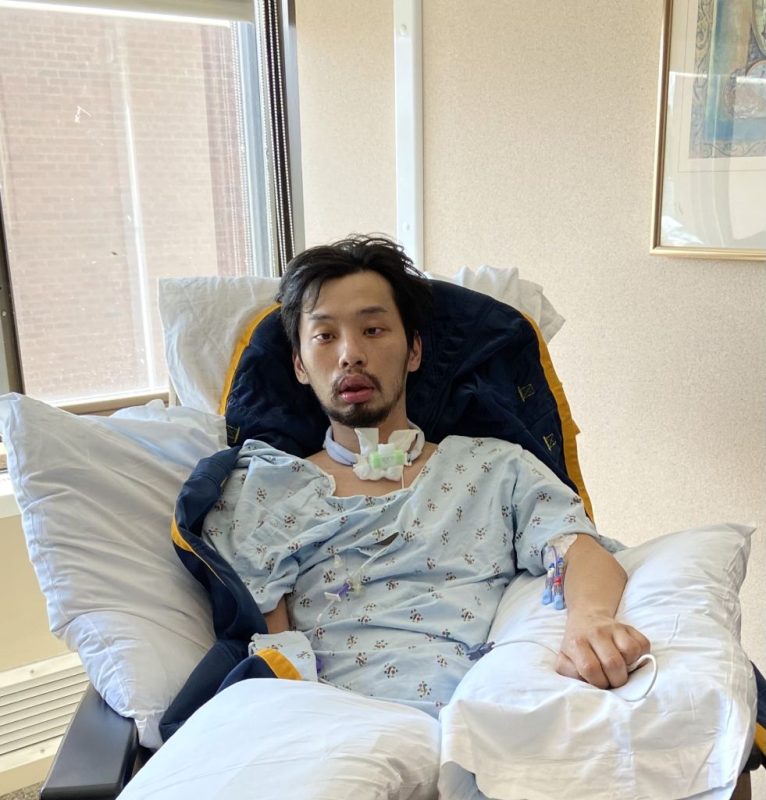 After the brain surgery, Ben had several infections in the lungs and urinary tract. The doctors had to perform a tracheostomy to insert a tube in the trachea to enable easier breathing for Ben. This was followed by a PEG surgery to insert a feeding tube directly into his stomach where only pureed food and fluids were fed to him. Upon recovery from the surgeries, Ben was transferred to a rehabilitation centre where he was supposed to begin his long journey to mend his broken body.