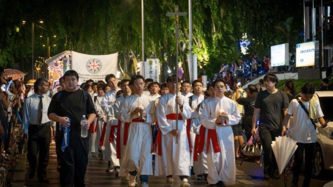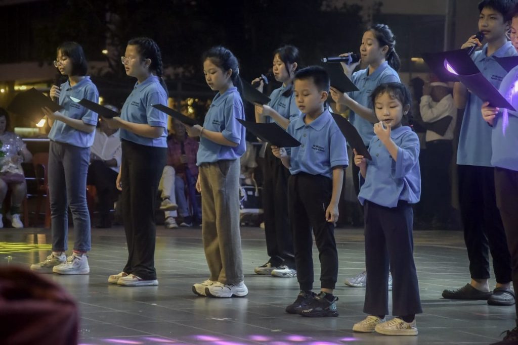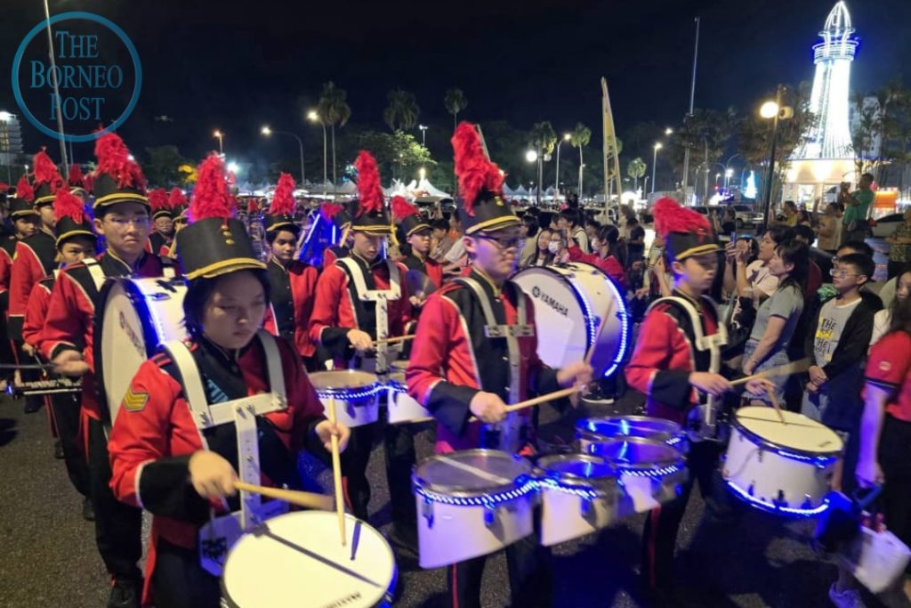 Suasana malam disemarakkan lagi dengan kehadiran kumpulan pancaragam dan pasukan perarakan, termasuk daripada Catholic High School, Sacred Heart Bagpipe Band, Sekolah Tung Hua, serta Boys’ Brigade. Irama muzik dan langkah seragam peserta memberikan tenaga kepada perarakan, menjadikan perjalanan itu bukan sekadar pergerakan fizikal, tetapi satu pengalaman perayaan yang hidup.