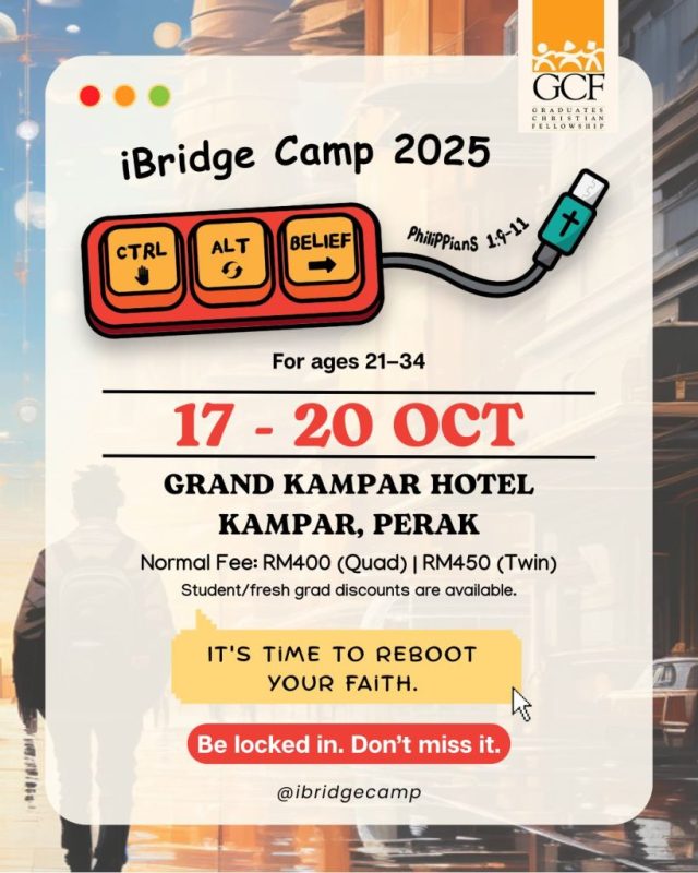 Just like a device under constant strain eventually enters a “not responding” state, our lives can easily run into burnout without a spiritual reboot. That’s why the theme of iBridge Camp 2025, held from 17–20 October 2025 this year at the Grand Kampar Hotel, Perak, is “CTRL + ALT + BELIEF” –  a call to restart our spiritual lives in Christ.